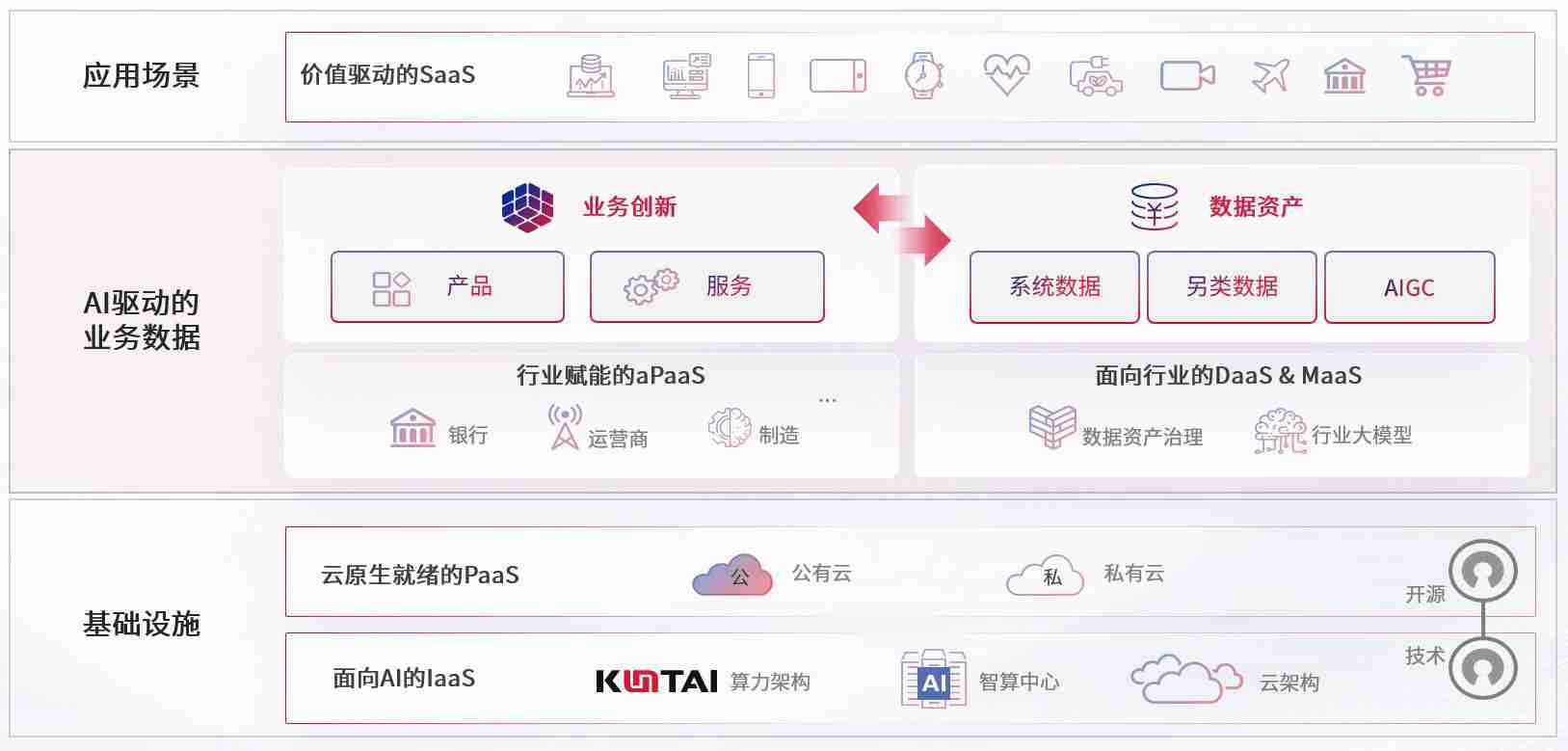 数字时代,,,围绕企业数字化转型的关键要素,,,z6com尊龙数码开创性的提出数云融合战略和技术体系框架,,,着力在云原生、、数字原生、、、、AI原生和信创产业上架构产品和服务能力,,,,为处在不同数字化转型阶段的快消零售、、、汽车、、、、金融、、医疗、、、、政企、、、教育、、、、运营商等行业客户提供泛在的敏捷IT能力和融合的数据驱动能力,,,构建跨界融合创新的数字业务场景和新业务模式,,,助力企业级客户建立面向未来的核心能力和竞争优势,,,全面推动社会的数字化、、智能化转型升级。。